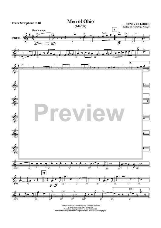 "Men of Ohio - Tenor Saxophone" Sheet Music by Henry Fillmore