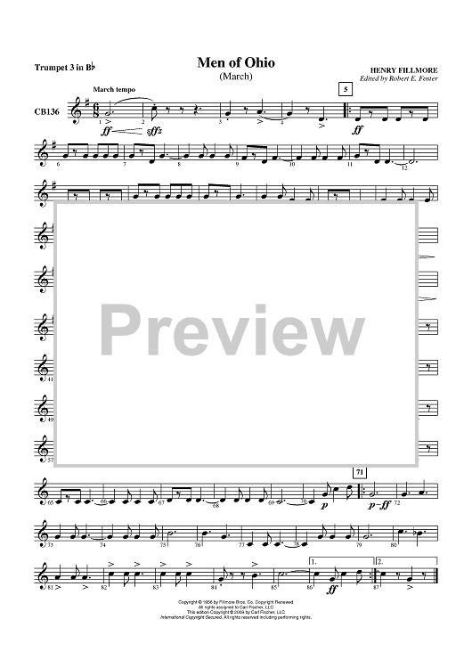 "Men of Ohio - Trumpet 3 in B-flat" Sheet Music by Henry Fillmore