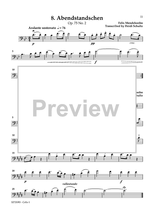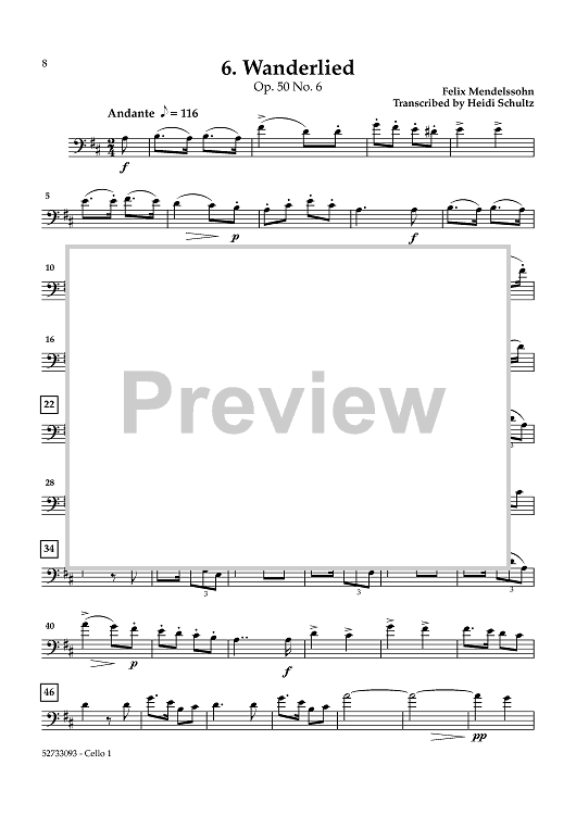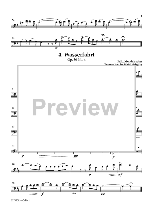 Digital Sheet Music for Mendelssohn Songs: Volume 1 for Cello Quartet - Cello 1 by , Felix Mendelssohn, Heidi Schultz scored for Cello Quartet; id:464538