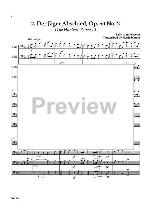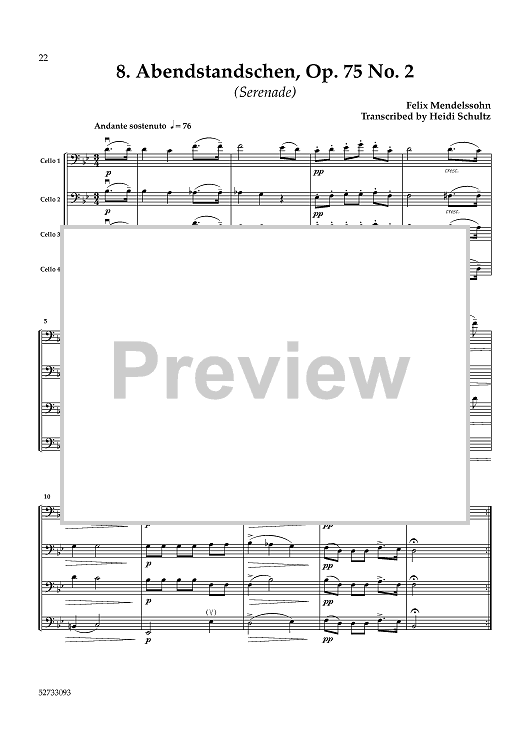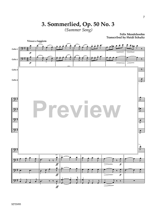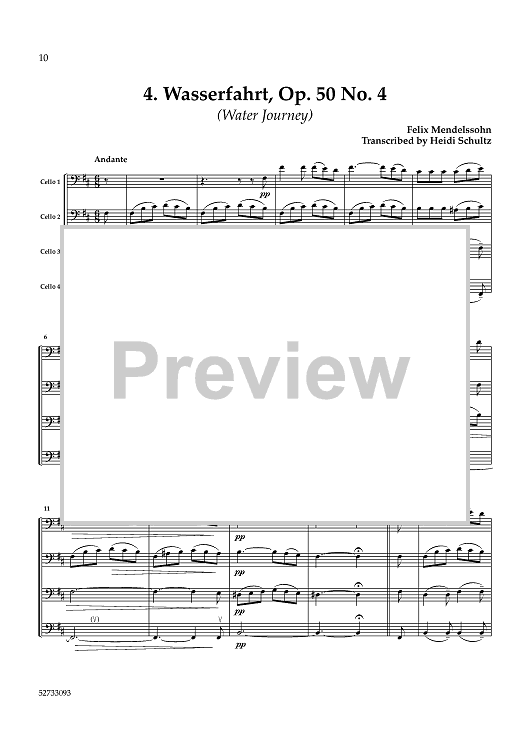 Digital Sheet Music for Mendelssohn Songs: Volume 1 for Cello Quartet - Score by , Felix Mendelssohn, Heidi Schultz scored for Cello Quartet; id:464537