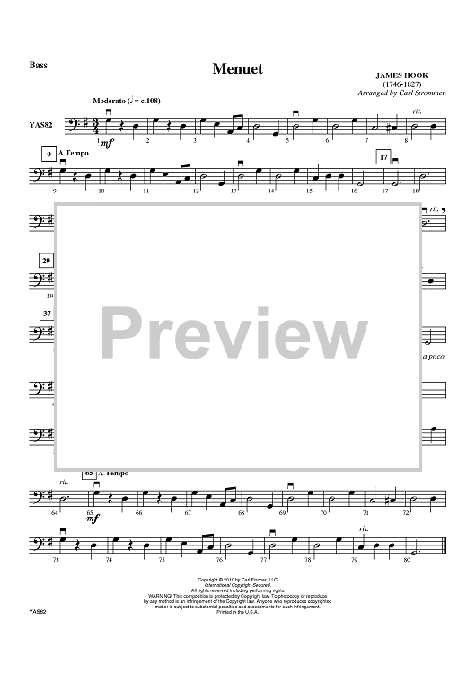 Digital Sheet Music for Menuet - Bass by Carl Strommen, James Hook scored for Orchestra; id:411079