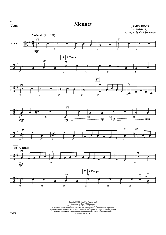 "Menuet - Viola" Sheet Music by James Hook