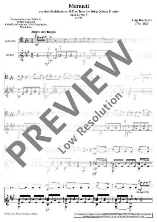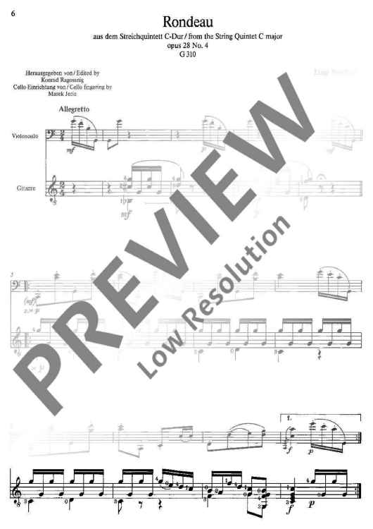 Digital Sheet Music for Menuett aus dem Streichquintett E-Dur und Rondeau aus dem Streichquintett C major by Luigi Boccherini scored for Cello And Guitar; id:475856