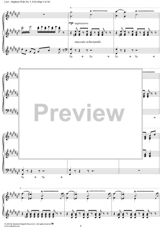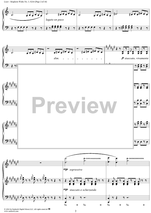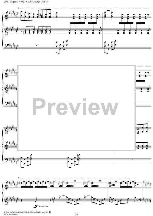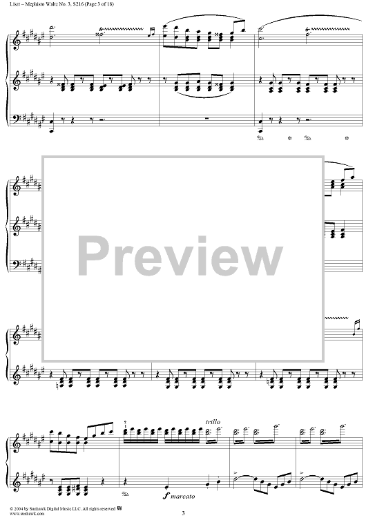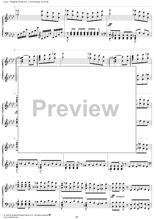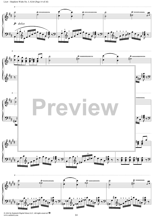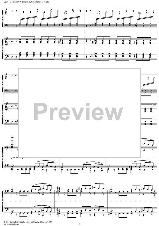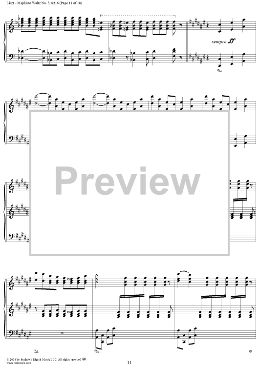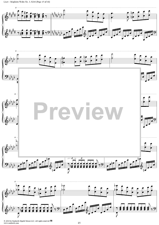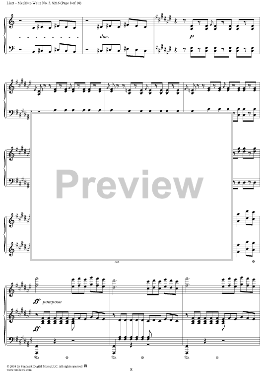 Digital Sheet Music for Mephisto Waltz No. 3, S216 by Franz Liszt scored for Piano Solo; id:295551