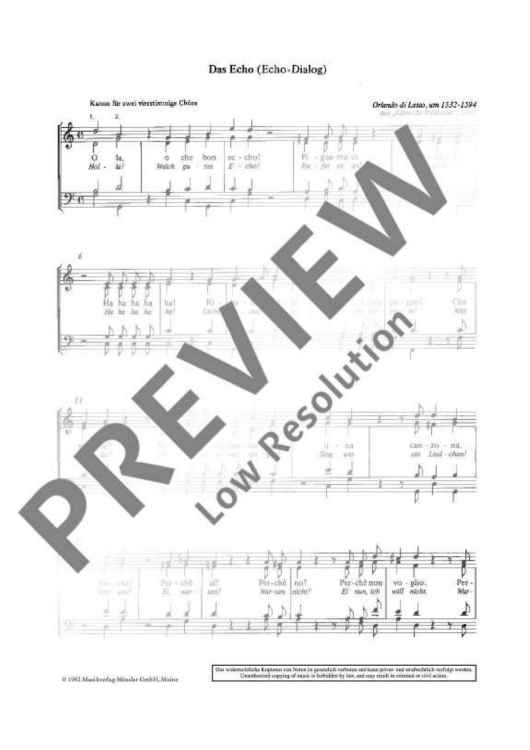 "Mercenary serenade and Echo song - Choral Score" Sheet Music by Orlando di Lasso