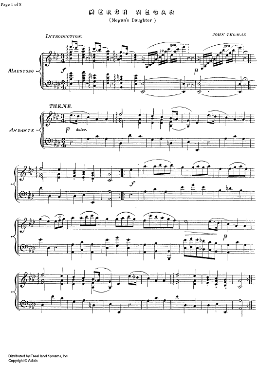 Digital Sheet Music for Merch Megan by , John Thomas, Traditional scored for Harp Solo; id:328778