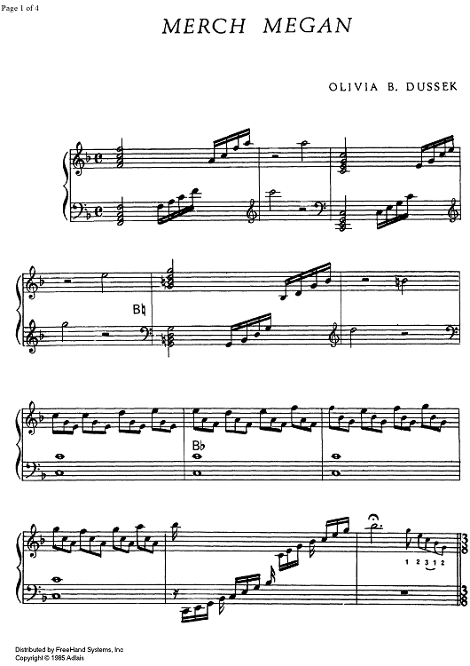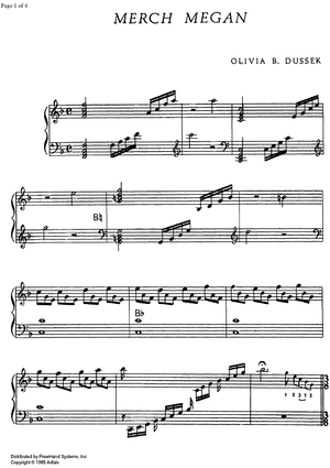 Digital Sheet Music for Merch Megan by , Olivia B. Dussek, Traditional scored for Harp Solo; id:328797