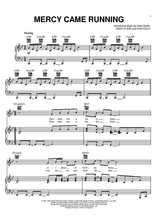 Digital Sheet Music for Mercy Came Running by Don Koch, Dan Dean, Dave Clark, Phillips, Craig and Dean scored for Piano/Vocal/Chords; id:386451