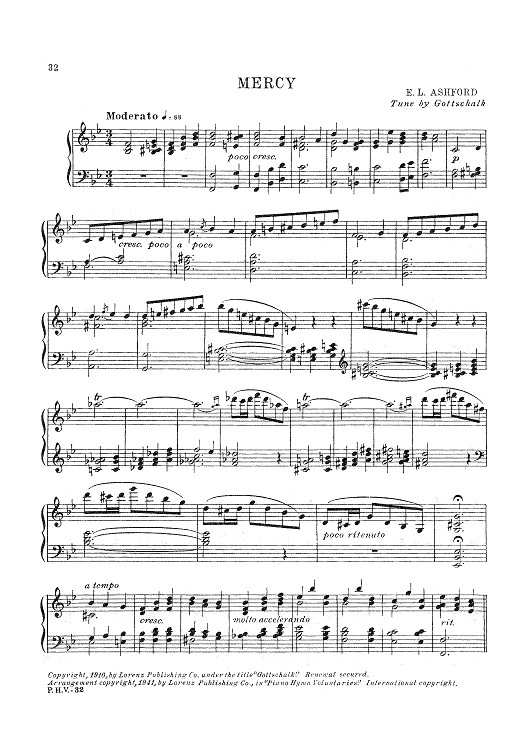 Digital Sheet Music for Mercy by Louis Moreau Gottschalk, E. L. Ashford scored for Piano Duet; id:434906