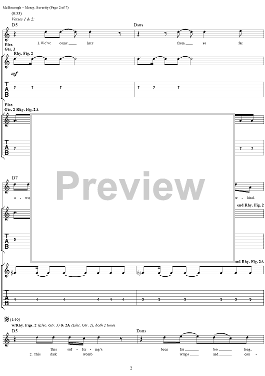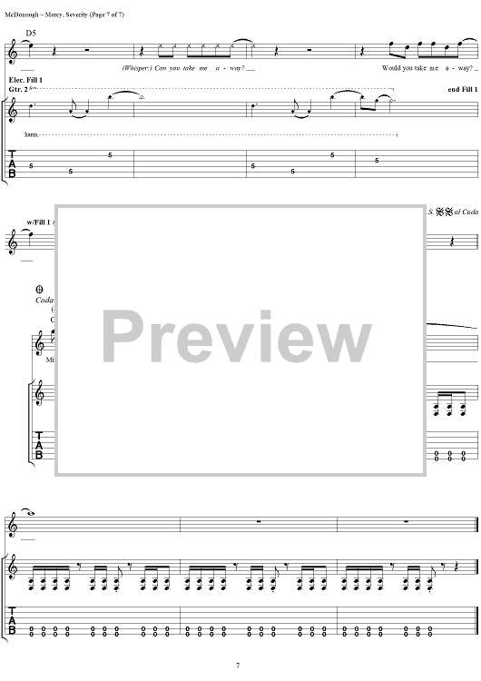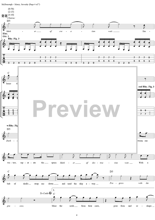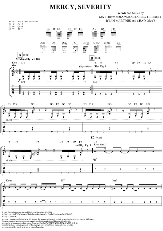 Digital Sheet Music for Mercy, Severity by Matthew McDonough, Gurrg, Ry-Know, Chad Gray, Mudvayne scored for Guitar Tab/Vocal; id:297589