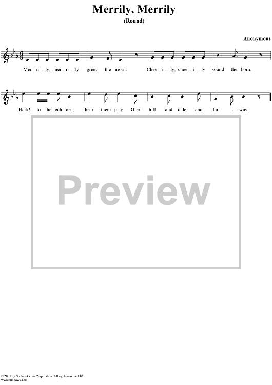 Digital Sheet Music for Merrily, Merrily by Unknown Writer scored for Solo a cappella; id:277972