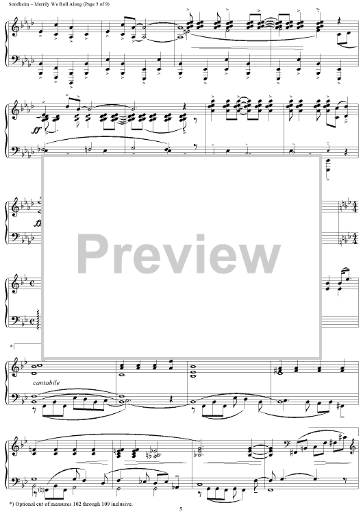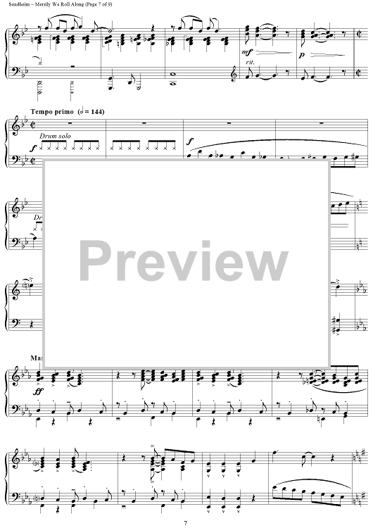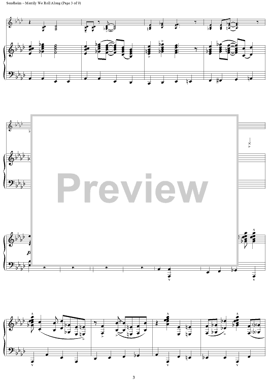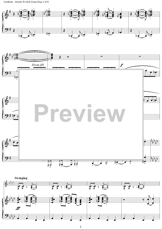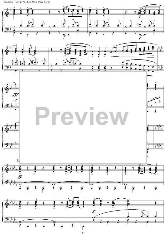Digital Sheet Music for Merrily We Roll Along (Overture) by Stephen Sondheim scored for Piano Solo; id:259225