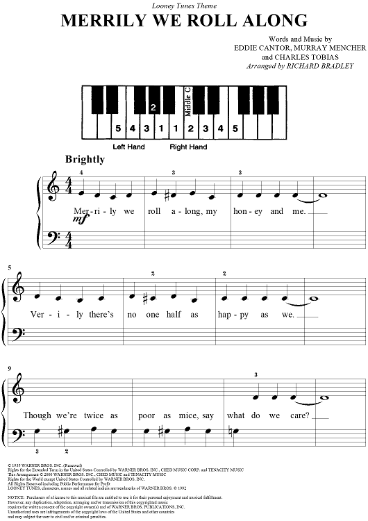 Digital Sheet Music for Merrily We Roll Along by Eddie Cantor, Richard Bradley, Murray Mencher, Charles Tobias scored for Five Finger Piano/Vocal; id:283578