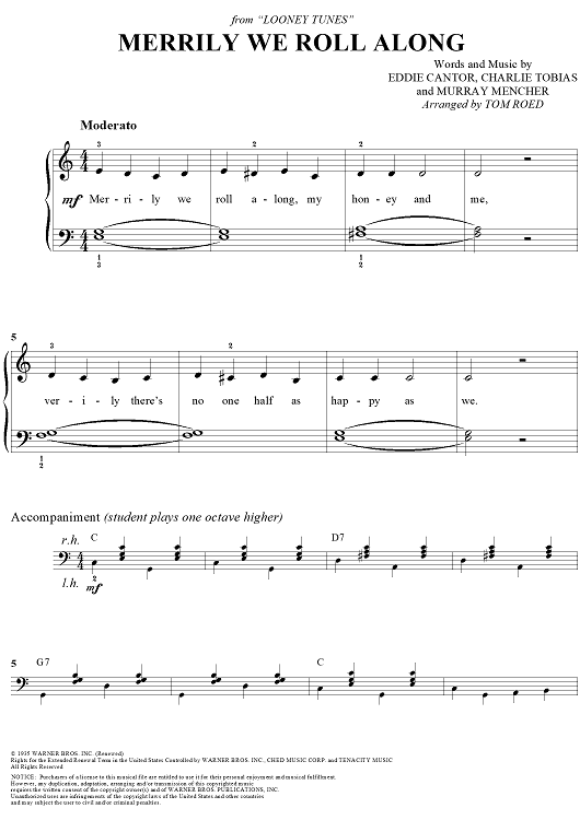 Digital Sheet Music for Merrily We Roll Along by Eddie Cantor, Tom Roed, Charlie Tobias, Marray Mencher scored for Easy Piano/Vocal; id:286176