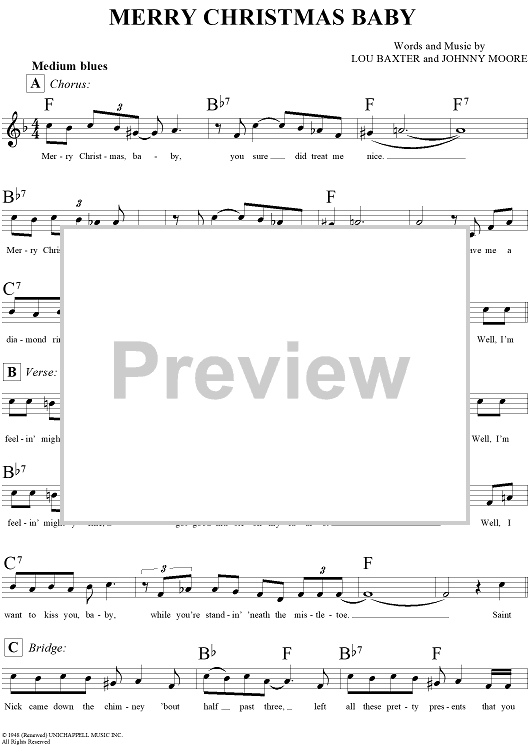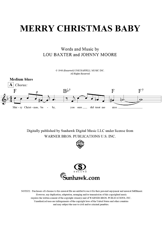 Digital Sheet Music for Merry Christmas Baby by Lou Baxter, Johnny Moore scored for Lead Sheet; id:291512