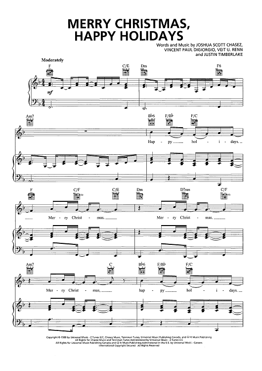 Digital Sheet Music for Merry Christmas, Happy Holidays by Veit Renn, JC Chasez, Pentatonix, Vincent Paul Digiorgio, Justin Timberlake scored for Piano/Vocal/Chords; id:465860