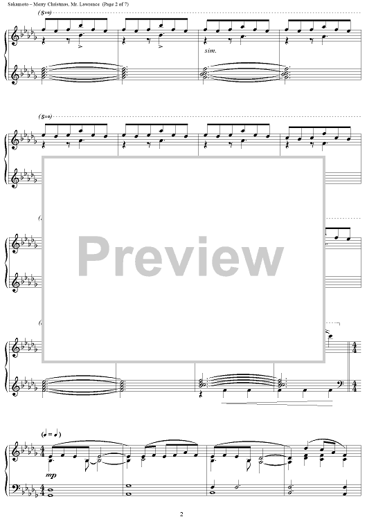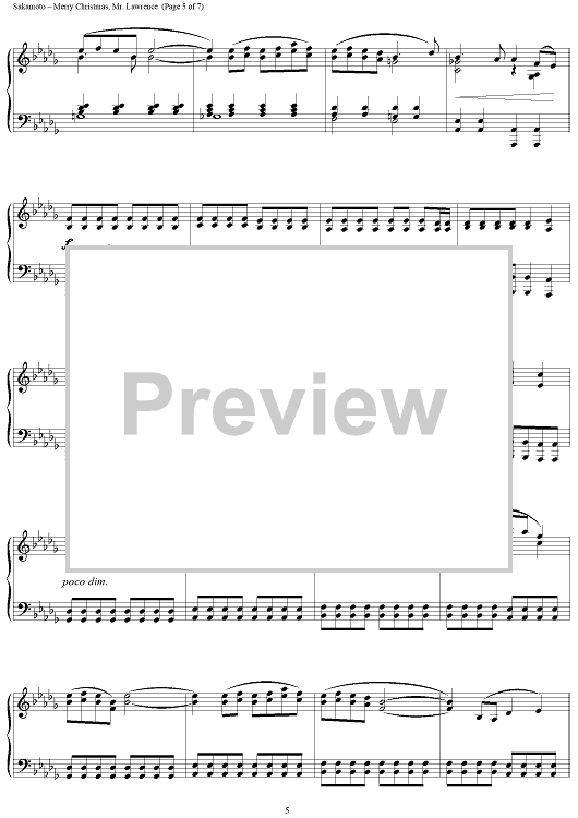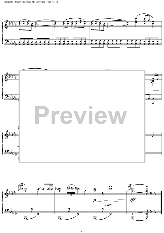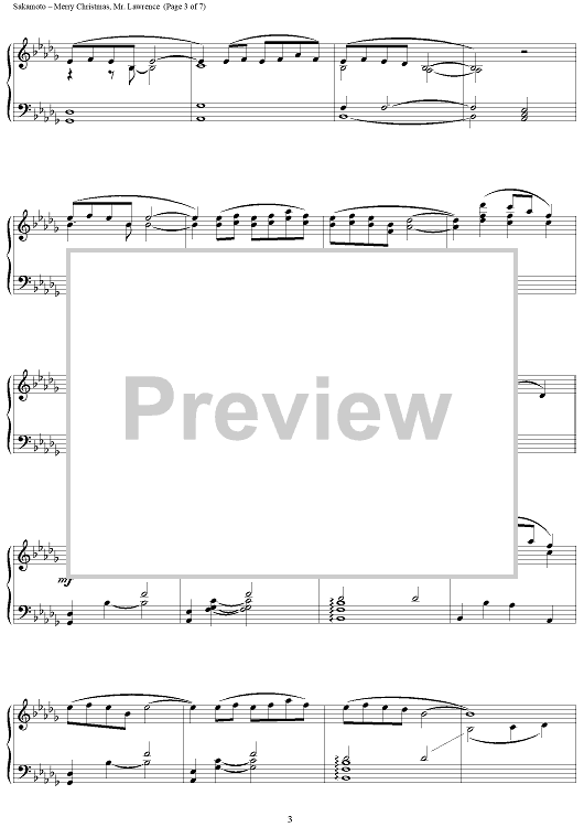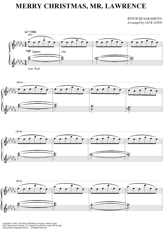 Digital Sheet Music for Merry Christmas, Mr. Lawrence by Jack Long, Ryiuichi Sakamoto scored for Piano Solo; id:460481