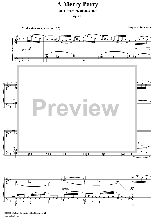 Digital Sheet Music for Merry Party, A - No. 11 from "Kaleidoscope" Op. 18 by Eugene Goossens scored for Piano Solo; id:267990