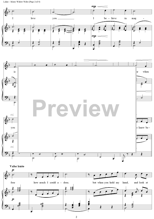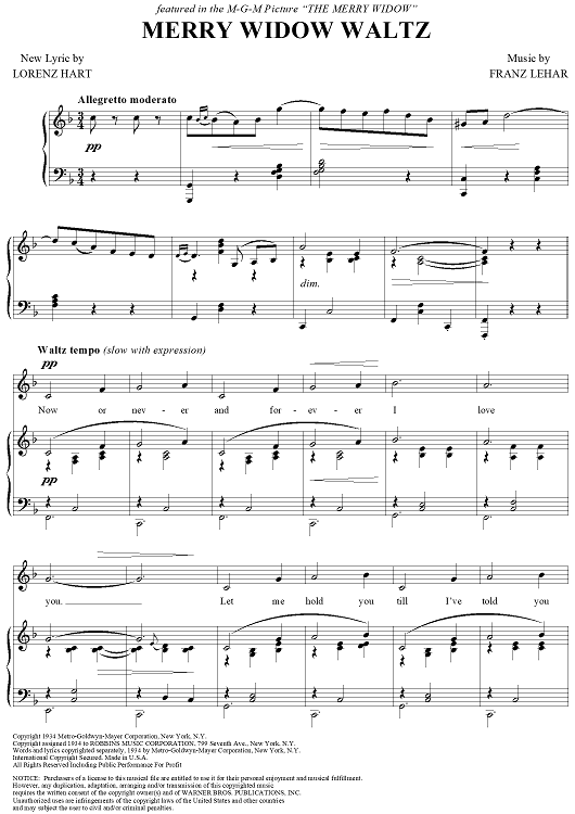 Digital Sheet Music for Merry Widow Waltz by Lorenz Hart, Franz Lehár scored for Piano/Vocal; id:356028