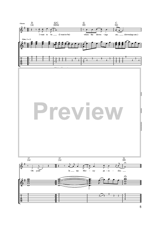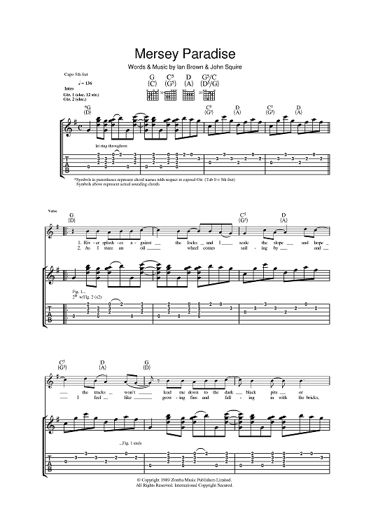 Digital Sheet Music for Mersey Paradise by Ian Brown, John Squire, The Stone Roses scored for Guitar Tab; id:396188