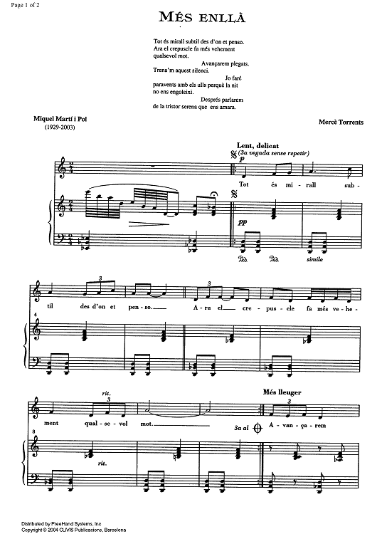 "Mes enlla - Score" Sheet Music by Mercè Torrents