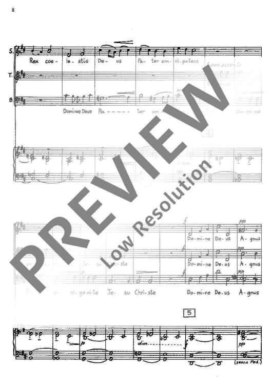 Rota's Mass for choir and organ is published in two editions: for three-part mixed choir and for four-part male choir, each with organ. The organ part is identical in both editions. As a consequence, it is possible to perform the work with varying choir ensembles. The mass, with Latin text, is suitable both for amateur choirs and performance in small churches or concert halls.