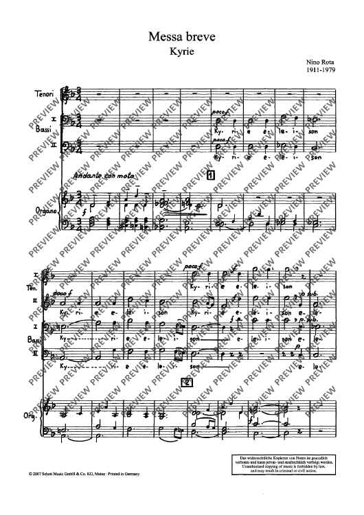 "Messa breve - Score" Sheet Music by Nino Rota