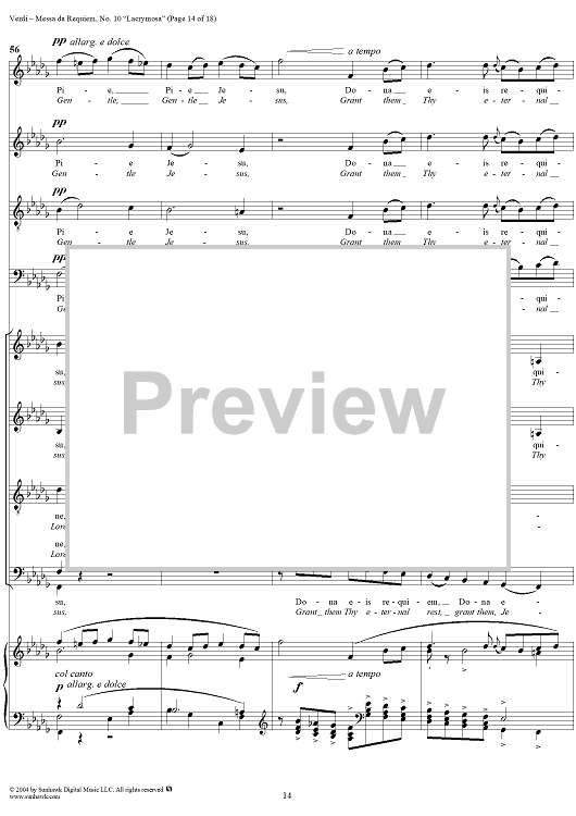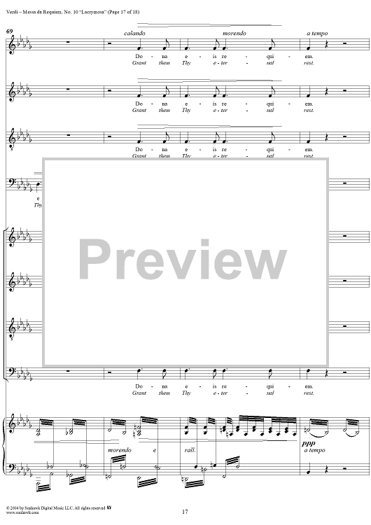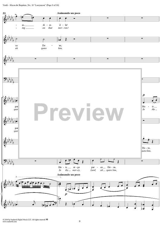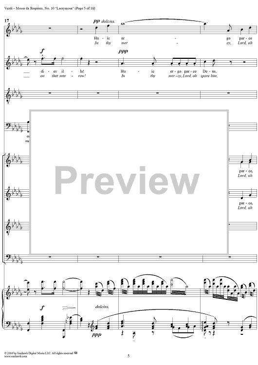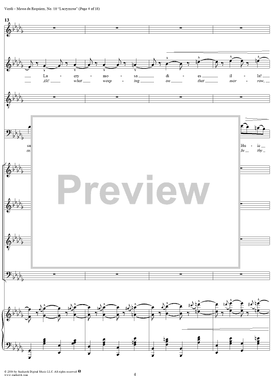 Digital Sheet Music for Messa da Requiem: No. 10. Lacrymosa by Giuseppe Verdi scored for Four-part Mixed Chorus/Piano; id:305833