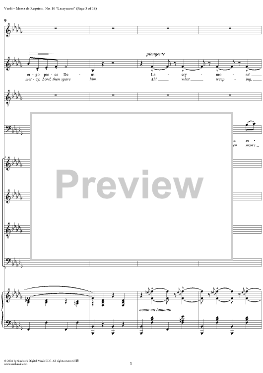 "Messa da Requiem: No. 10. Lacrymosa" Sheet Music by Giuseppe Verdi