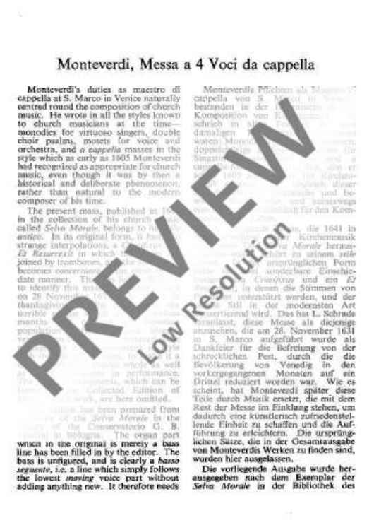 Scored For: Mixed Choir (satb) A Cappella Or With Basso Continuo