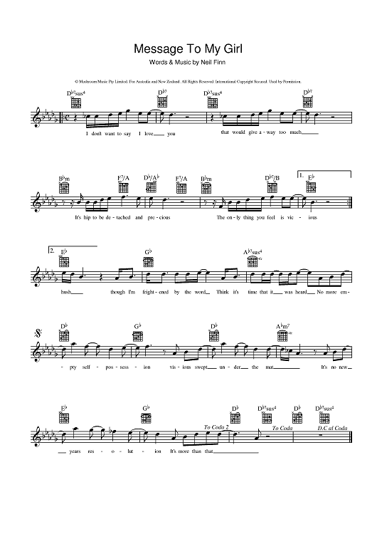 Digital Sheet Music for Message To My Girl by Neil Finn, Split Enz scored for Guitar Tab; id:401865