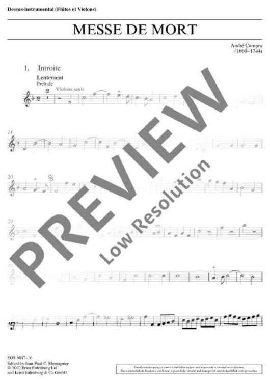 "Messe de Mort - Flute / Violin" Sheet Music by Andre Campra