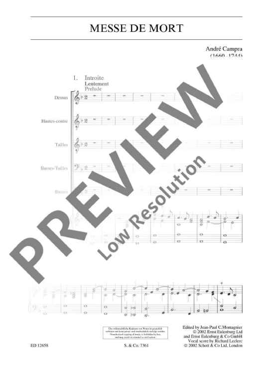 "Messe de Mort - Piano Reduction" Sheet Music by Andre Campra