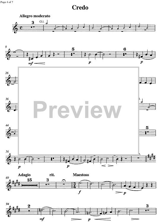 Digital Sheet Music for Messe solenne [set of parts] - B-flat Clarinet 2 by , Cesare Augusto Seghizzi scored for Tenor/Bass/ATTB Chorus/Orchestra; id:354339