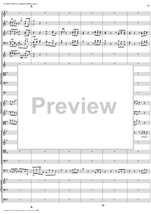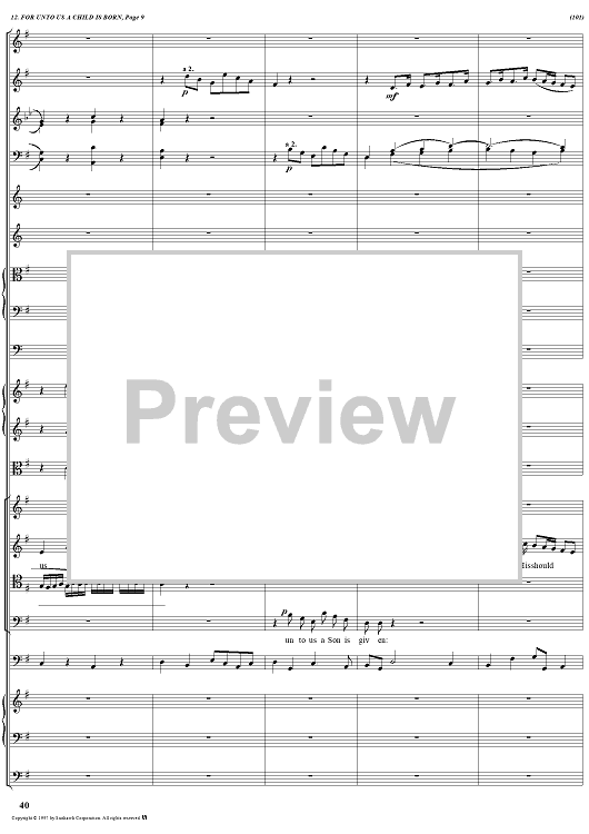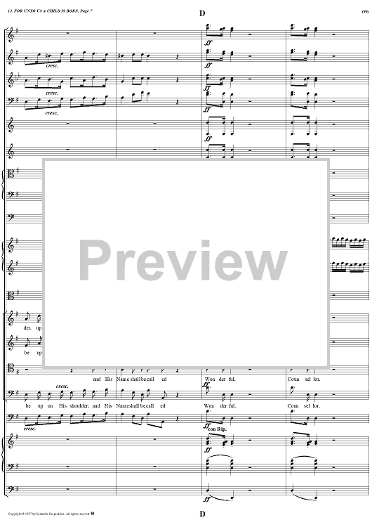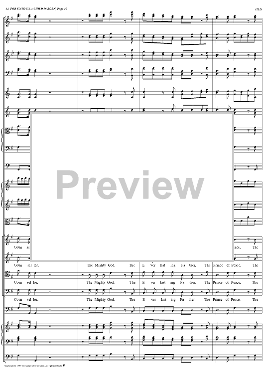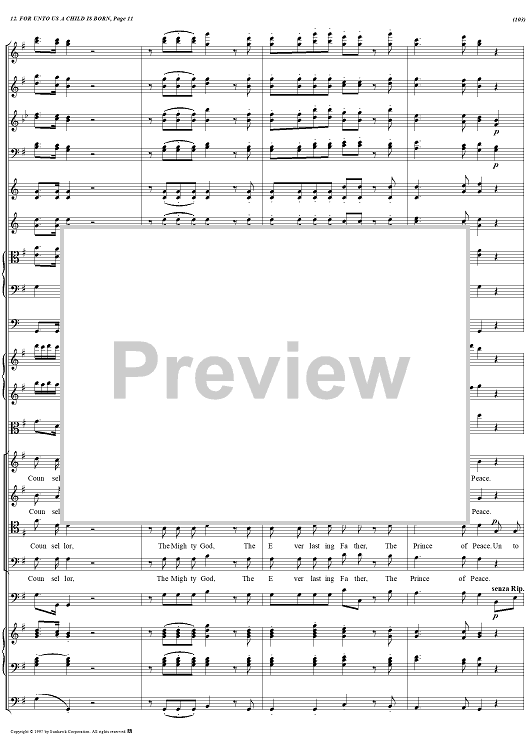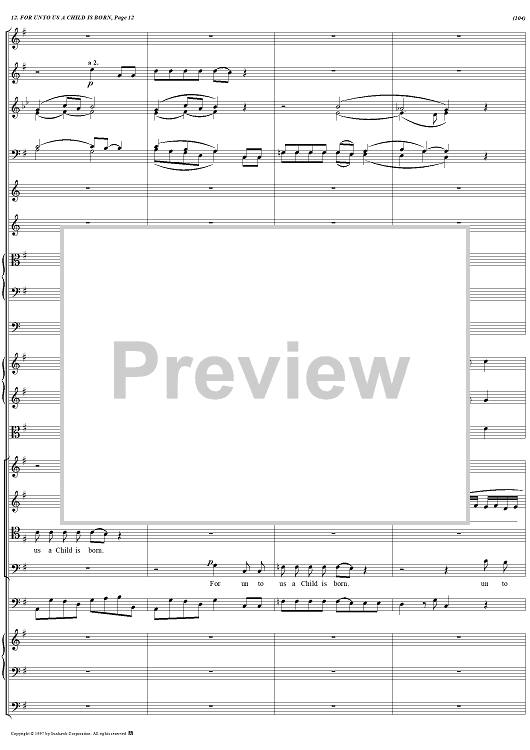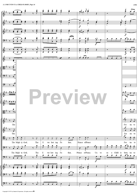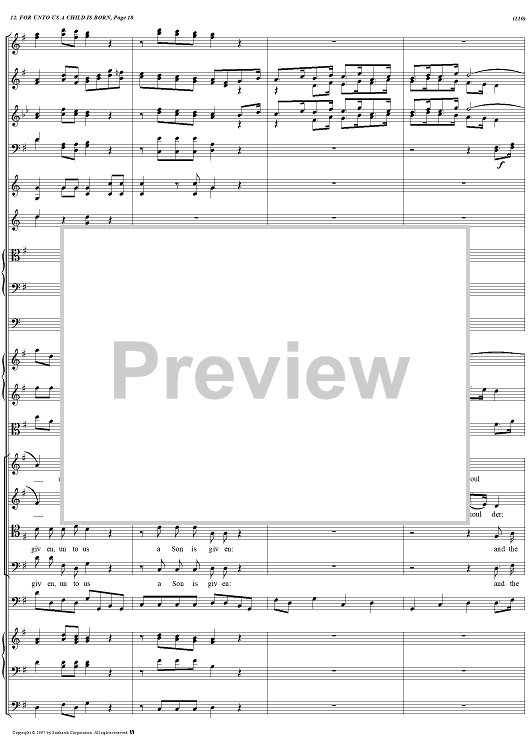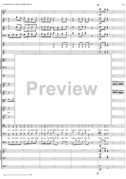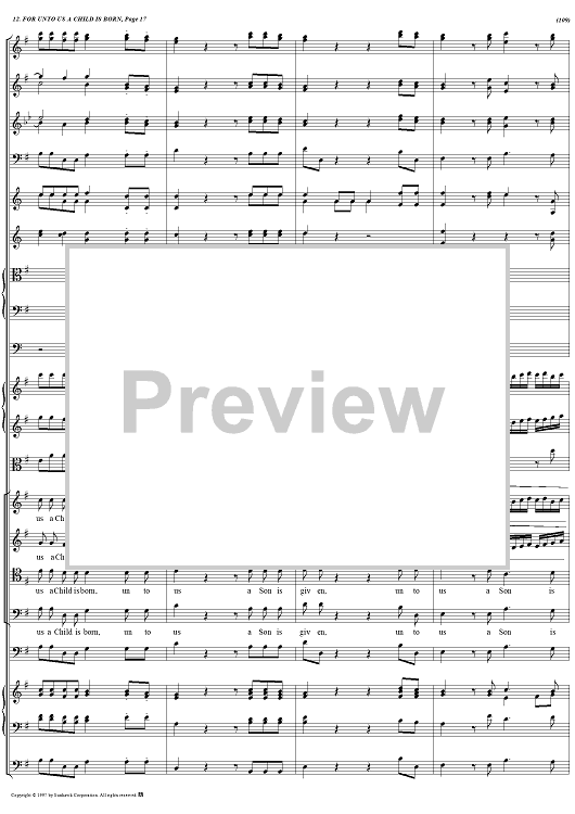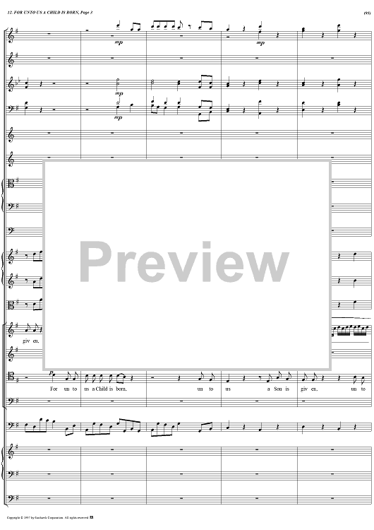 Digital Sheet Music for Messiah, no. 12: For unto us a Child is born - Full Score by George Frideric Handel scored for SATB/Orchestra; id:94318