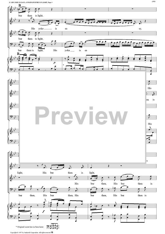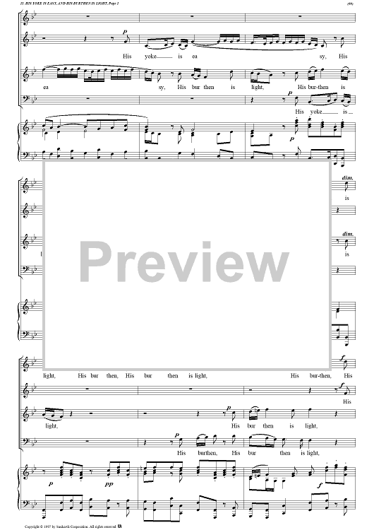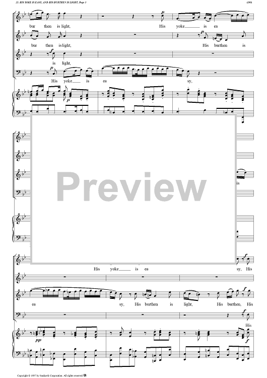 Digital Sheet Music for Messiah, no. 21: His yoke is easy, and His burden is light - Piano Score by George Frideric Handel scored for Soli/SATB/Piano; id:94379
