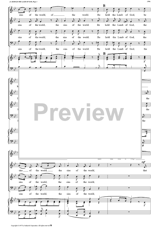 Digital Sheet Music for Messiah, no. 22: Behold the Lamb of God - Piano Score by George Frideric Handel scored for Soli/SATB/Piano; id:94380