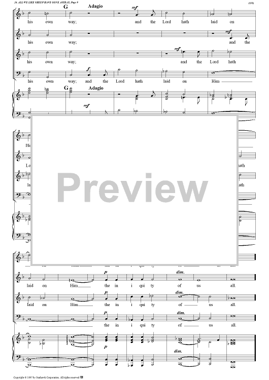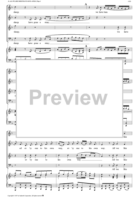 Digital Sheet Music for Messiah, no. 26: All we like sheep have gone astray - Piano Score by George Frideric Handel scored for Soli/SATB/Piano; id:94384