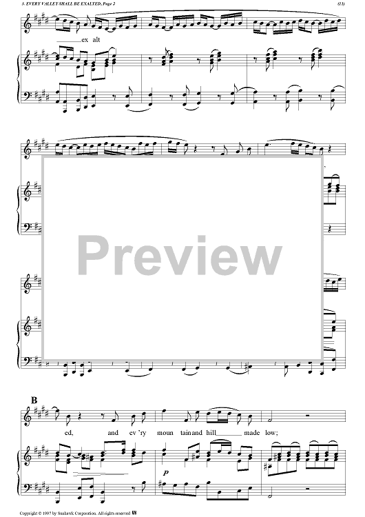 Digital Sheet Music for Messiah, no. 3: Every valley shall be exalted - Piano Score by George Frideric Handel scored for Tenor solo/Piano; id:94361