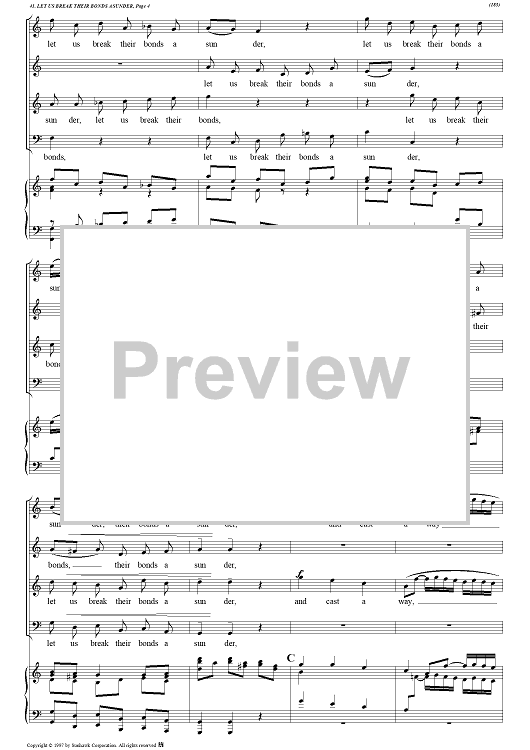 Digital Sheet Music for Messiah, no. 41: Let us break their bonds asunder - Piano Score by George Frideric Handel scored for Soli/SATB/Piano; id:94399