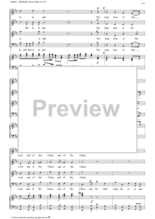 Digital Sheet Music for Messiah, no. 44: Hallelujah! - Piano Score by George Frideric Handel scored for Soli/SATB/Piano; id:94402