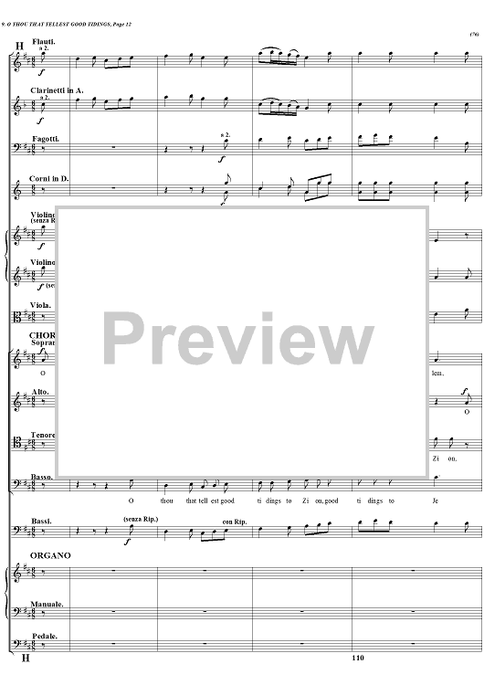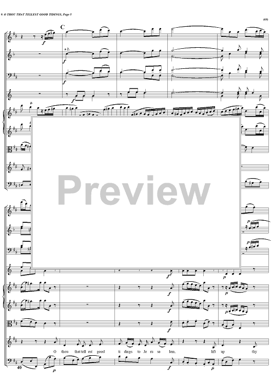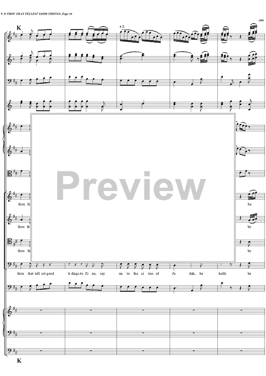 Digital Sheet Music for Messiah, nos. 8: Behold, a virgin shall conceive, and. 9: O thou that tellest good tidings to Zion - Full Score by George Frideric Handel scored for Orchestra/Contralto Soloist; id:94315
