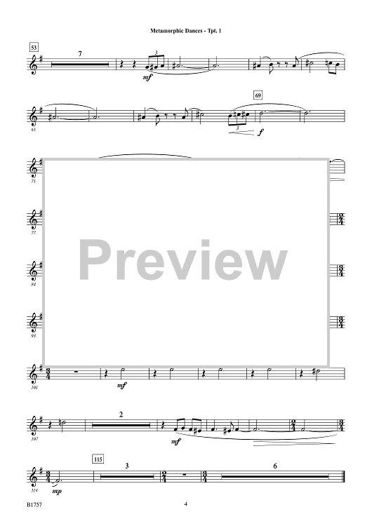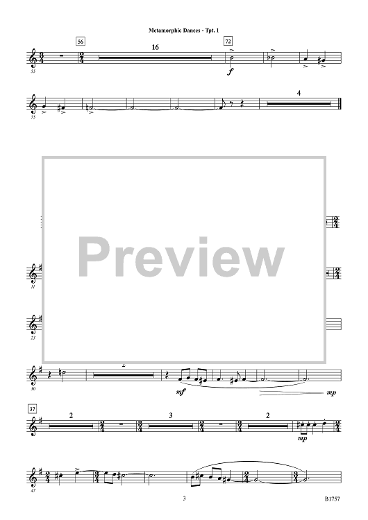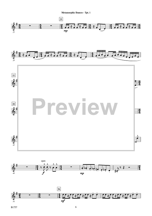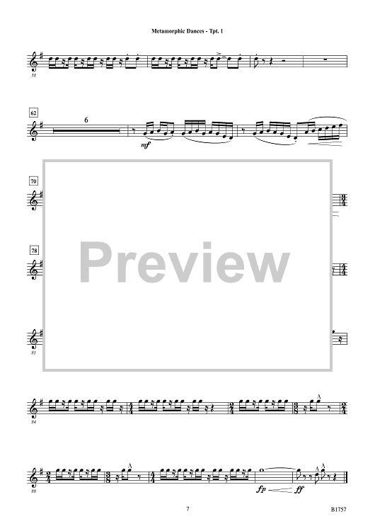 Digital Sheet Music for Metamorphic Dances - Bb Trumpet 1 by Brian Balmages scored for Concert Band; id:510413
