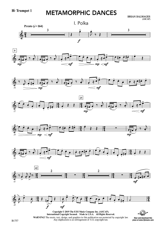 "Metamorphic Dances - Bb Trumpet 1" Sheet Music by Brian Balmages