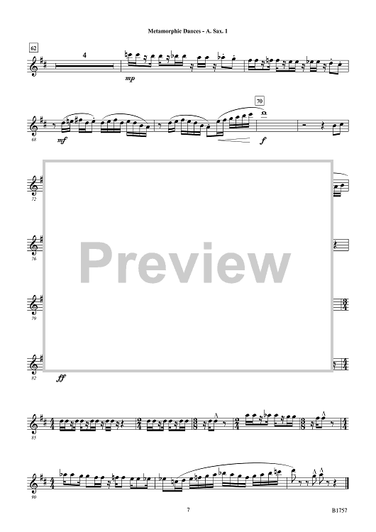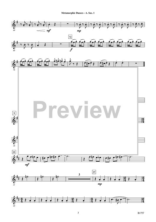 Digital Sheet Music for Metamorphic Dances - Eb Alto Saxophone 1 by Brian Balmages scored for Concert Band; id:510409
