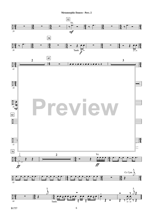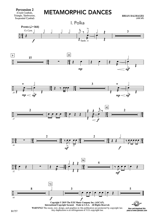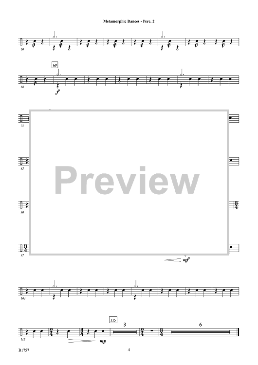 Digital Sheet Music for Metamorphic Dances - Percussion 2 by Brian Balmages scored for Concert Band; id:510431