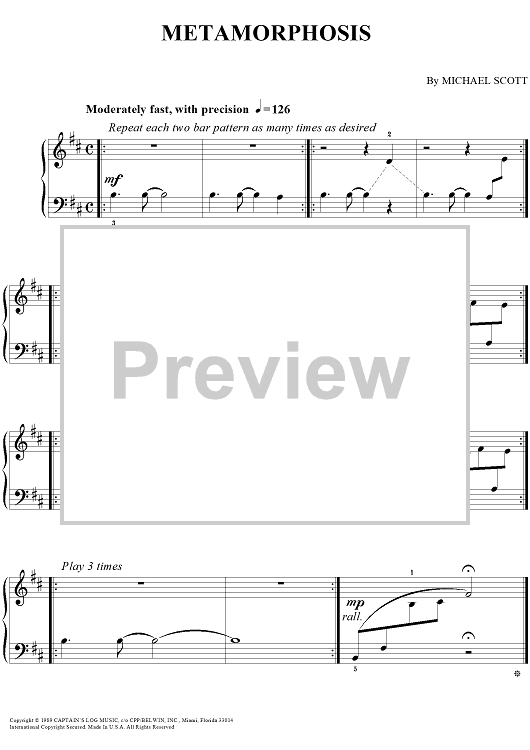 Digital Sheet Music for Metamorphosis by Michael Scott scored for Easy Piano; id:257578