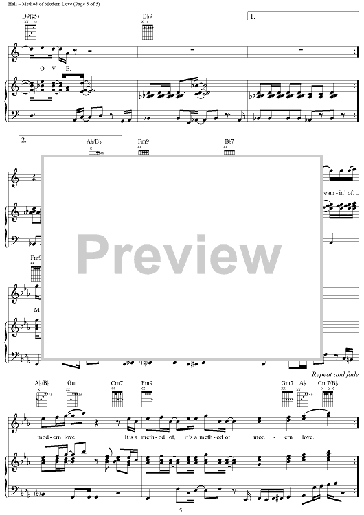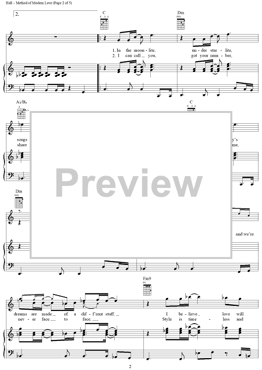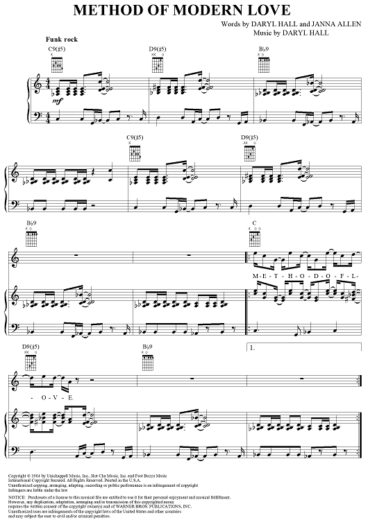 Digital Sheet Music for Method of Modern Love by Daryl Hall, Janna Allen scored for Piano/Vocal/Chords; id:355944