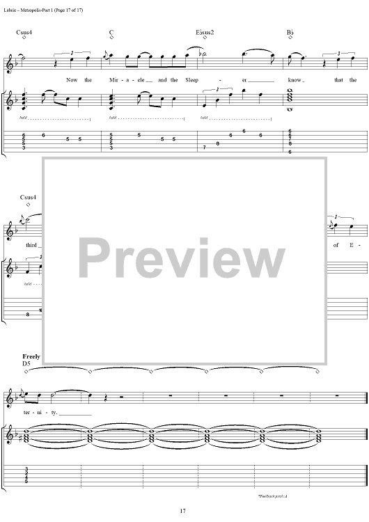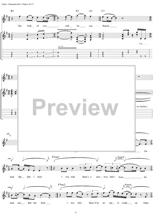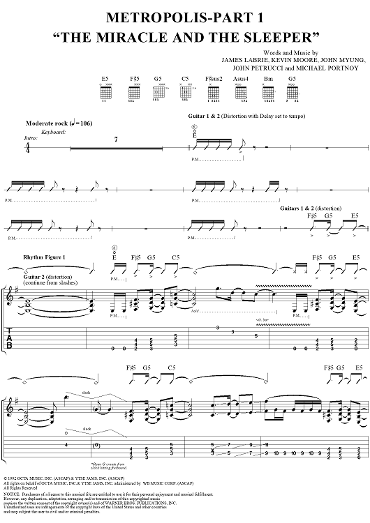 "Metropolis - Part 1: The Miracle and the Sleeper" Sheet Music by Dream Theater