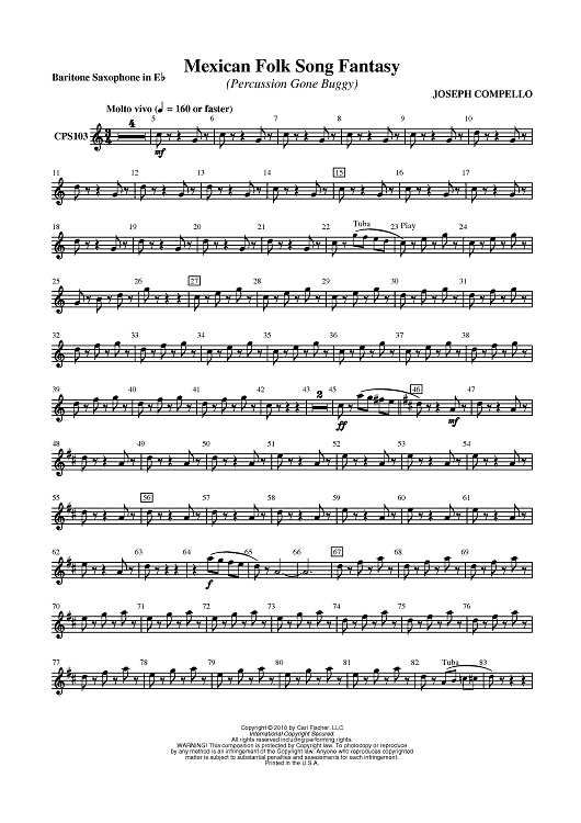 "Mexican Folk Song Fantasy (Percussion Gone Buggy) - Baritone Sax" Sheet Music by Joseph Compello